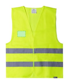 Chaleco reflectante infantil de alta visibilidad, homologado según normativas de seguridad CE fabricado en RPET. Con doble tira reflectante alrededor del cuerpo y cierres de velcro. Talla única para niño.El material RPET se elabora a partir de plástico reciclado, para así fomentar la reutilización de residuos plásticos y ayudar a la sostenibilidad del planeta.
