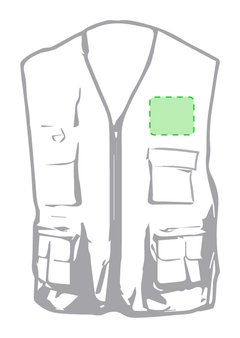 Chaleco en resistente combinación de materiales algodón y poliéster de vivos colores. Cierre de cremallera principal, multitud de bolsillos frontales y laterales de gran capacidad con cierre de velcro y anilla metálica en el pecho. Disponible en tallas L, XL, XXL.