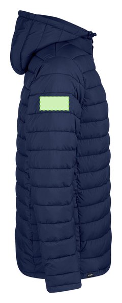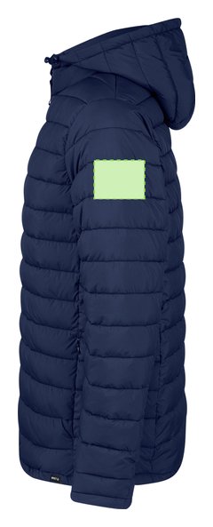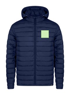 Chaqueta unisex en cálido y suave material 100% poliéster RPET, con capucha ajustable mediante cintas elásticas. En material extra ligero efecto pluma, resistente al agua y cortavientos. Con acolchado interior, cremallera en cuello con tapeta y cinta en tirador, además de amplios bolsillos laterales con cremallera. Incluye práctica funda de transporte con cordón ajustable y etiqueta con logotipo RPET. Disponible en variada gama de colores y en tallas XS, S, M, L, XL, XXL. El material RPET se elabora a partir de plástico reciclado, para así fomentar la reutilización de residuos plásticos y ayudar a la sostenibilidad del planeta.