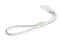 Original cinta para gafas con enganches de seguridad para todo tipo de patillas. En resistente poliéster de vivos colores y con accesorio de ajuste de seguridad con superficie lisa para marcaje.