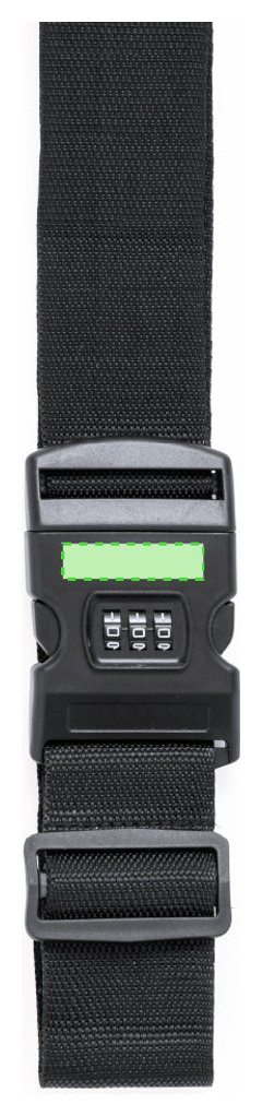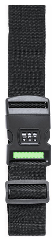 Cinta para maletas ajustable fabricada en resistente poliéster. Con cierre de hebilla ajustable y contraseña de 3 cifras. En discreto color negro y de 200cm de largo. Presentada en una bolsa individual de papel reciclado.
