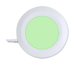 Cinta métrica de PVC de 150cm de largo y mecanismo retráctil con botón de parada. Escala impresa en color negro de cm y pulgadas.