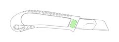 Cutter en combinación de materiales acero inox y aluminio con cuchilla ancha y mango ergonómico troquelado. Capucha extraíble para ajuste de corte de cuchilla.