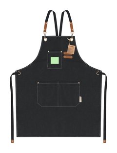 Delantal de alta calidad en resistente algodón canvas reciclado de 350g/m2, con costuras reforzadas. De corte por debajo de la rodilla, con cintas en resistente algodón y doble ajuste: espalda y cintura. Con bolsillos frontales, accesorio en polipiel y remaches metálicos de refuerzo. Con distintiva etiqueta.