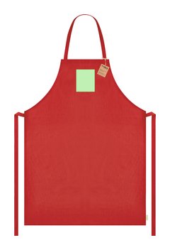 Delantal elaborado en algodón reciclado 180 gr/m². Con cintas de ajuste y de corte por debajo de la rodilla. Con distintivo algodón reciclado en etiqueta.