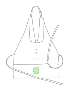 Elegante delantal con adorno de botones en material 100% poliéster. Con cinta para cuello ajustable y cintas para cintura.