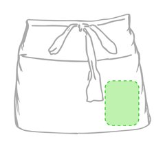 Delantal para cintura en material 100% poliéster de suave acabado en elegante color negro. Con 2 bolsillos grandes, bolsillo mediano y funda par bolígrafo. Ajustable mediante cintas.