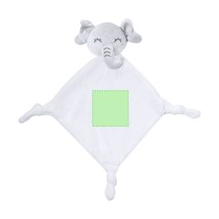 Tierno doudou con lindo diseño de elefante blanco. Con nudos en cada una de las 3 esquinas para estimular el sentido del tacto del bebé, facilitando la relajación. Fabricado en una única pieza de tela, para evitar que se separe en trozos más pequeños.