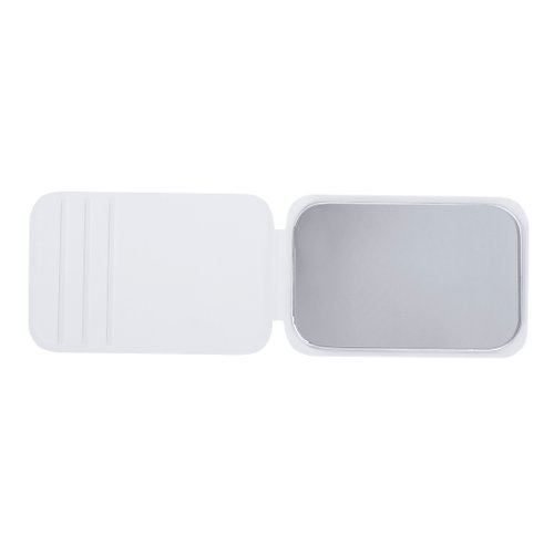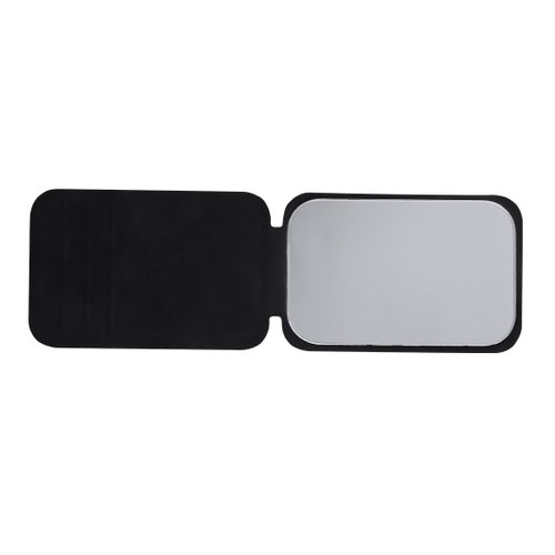 Espejo plegable con cubiertas en suave PU. Diseñado con soporte ajustable en tres posiciones. Con aumento 1x.