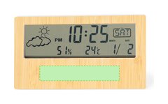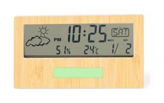 Estación meteorológica con frontal en bambú. Con sensor de temperatura y humedad. Función calendario y alarma. Alimentación a pila (1xAAA no incluida) y presentado en atractiva caja de diseño kraft. Disponible manual de instrucciones en español e inglés. Materiales como el bambú fomentan la utilización de materias primas naturales, reduciendo las emisiones contaminantes. Proviene de una planta de gran resistencia y versatilidad, con crecimiento y regeneración rápidos, siendo una excelente alternativa al uso de madera tradicional.