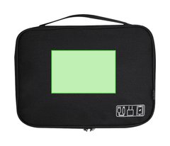 Estuche organizador de gran tamaño fabricado en RPET 600D. Incluye 3 bolsillos de apertura completa con doble tirador metálico y equipado con múltiples tipos de bolsillos interiores. Incluye asa para fácil transporte. Con distintivo RPET.
