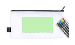 Estuche fabricado en non-woven RPET de color blanco, con cierre de cremallera y tirador metálico. Especialmente diseñado para colorear con ceras. Incluye 5 ceras en variados colores y distintivo RPET en etiqueta exterior.