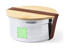 Fiambrera de 800 ml de capacidad fabricada en acero inox. Con tapa hermética en bambú y cinta elástica de cierre. Presentada en caja individual de diseño.