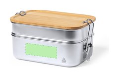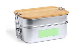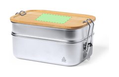 Fiambrera de 940 ml de capacidad, fabricada en acero inox reciclado. Dos compartimentos de 340 ml y 640 ml, con tapa hermética en bambú y cierres de seguridad; con distintivo acero inox reciclado. Presentada en caja individual de diseño. El acero es uno de los materiales más demandados y que puede encontrarse casi en todas partes, desde productos de uso diario a grandes construcciones. Con innumerables propiedades, entre las que cabe destacar la durabilidad y su alto grado de reutilización, convirtiéndolo en una alternativa muy valorada en soluciones de sostenibilidad. Debidamente tratado, permite obtener nuevos recursos de infinita utilización.
