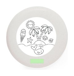 Original frisbiee personalizable fabricado en caña de trigo. Divertido conjunto de ceras y frisbiee con zona para poder colorear el original dibujo de naturaleza. Presentado en bolsa de papel reciclado. Incluye: Frisbee con dibujo de naturaleza para colorear. Caja de 6 ceras en multitud de colores.