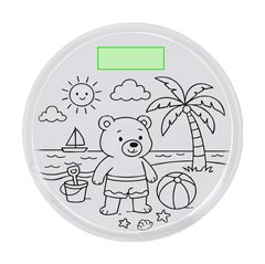 Original frisbee fabricado en Non-Woven. Divertido conjunto de 5 ceras y frisbee con zona para poder colorear el original dibujo de osito en playa.