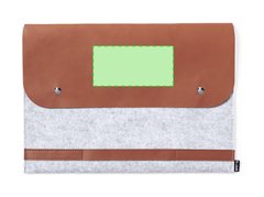 Original y suave funda de ordenador de línea nature, elaborada en resistente fieltro RPET. Compartimento principal con solapa en polipiel de tono marrón y cierres de corchete. Tira en la base en polipiel a juego y con función asa. Para ordenador portátil o tablet de hasta 14 pulgadas. Etiqueta con distintivo RPET en exterior. El fieltro RPET es fruto de la combinación del proceso de reciclaje de materiales plásticos junto con la técnica milenaria de fabricación del fieltro, dando como resultado un material de eco-tendencia que, además de ser de origen reciclado, también se convierte en reciclable.