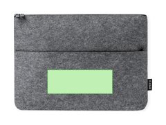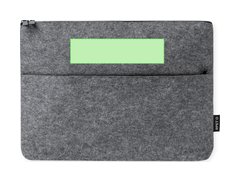 Funda para ordenador portátil fabricada en fieltro RPET. Bolsillo principal acolchado con cierre de cremallera, para portátiles de hasta 15 pulgadas, y bolsillo frontal para objetos más pequeños. Logotipo RPET en etiqueta. El fieltro RPET es fruto de la combinación del proceso de reciclaje de materiales plásticos junto con la técnica milenaria de fabricación del fieltro, dando como resultado un material de eco-tendencia que, además de ser de origen reciclado, también se convierte en reciclable.