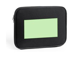 Funda para ordenador portátil, fabricada en resistente soft shell. En elegante color negro, con interior acolchado. Cierre de cremallera a juego con doble tirador. Para ordenador portátil o tablet de hasta 15 pulgadas.