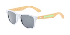 Gafas de sol fabricadas en bambú con protección UV400. Montura de colores en resistente material PC y patillas en bambú. Lentes AC (acetato de celulosa) de acabado espejo, disponibles en variada gama de colores en combinación con la montura. Presentada en atractiva bolsa de papel diseño kraft. Materiales como el bambú fomentan la utilización de materias primas naturales, reduciendo las emisiones contaminantes. Proviene de una planta de gran resistencia y versatilidad, con crecimiento y regeneración rápidos, siendo una excelente alternativa al uso de madera tradicional.
