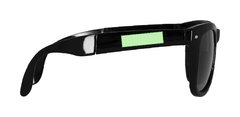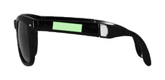Gafas de sol plegables con protección UV400, fabricadas en PC Reciclado. Resistente montura plegable con diseño elegante y acabado brillante en color negro. Las lentes son de color negro para garantizar estilo. Presentada en una funda blanca con forma redonda y cierre de cremallera.
