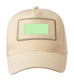 Gorra de 5 paneles tipo trucker fabricada en resistente poliéster RPET. Con marco frontal cosido, parte trasera de redecilla y cierre ajustable de plástico a juego en color natural. Con etiqueta distintiva de RPET. El material RPET se elabora a partir de plástico reciclado, para así fomentar la reutilización de residuos plásticos y ayudar a la sostenibilidad del planeta.