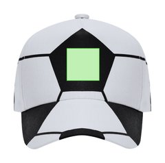 Gorra deportiva con original diseño de balón de fútbol de 5 paneles en algodón. Ajustable cierre de velcro.