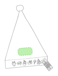Gorro de Papá Noel para niño. Tira frontal de non-woven en color blanco con divertidos dibujos y especialmente diseñada para colorear con ceras. Incluye 5 ceras de cuerpo cilíndrico en variados colores.