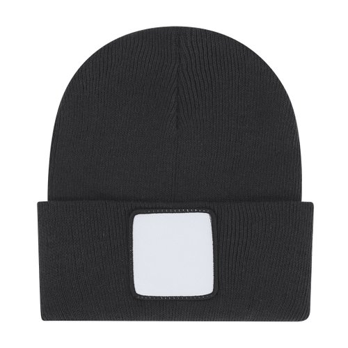 Suave y cálido gorro elástico de punto, fabricado en material acrílico. Incluye cómodo dobladillo con parche en blanco en la parte frontal, diseño especial para sublimación.