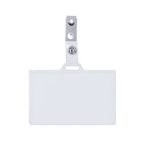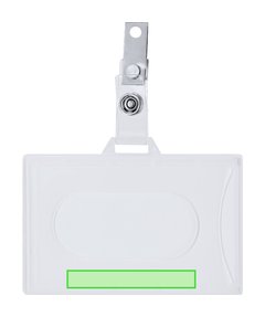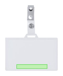 Identificador de PS rígido con pinza metálica en orientación horizontal. Ideal para llevar colgado y mostrar tu identificación. El sistema de cierre es extraíble y puedes utilizar el identificador en conjunto con lanyard.