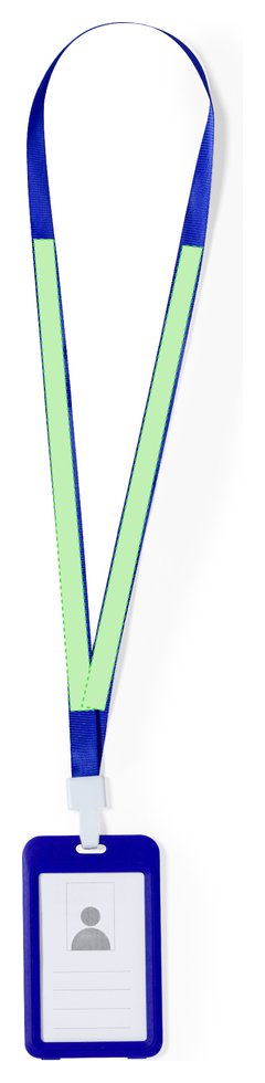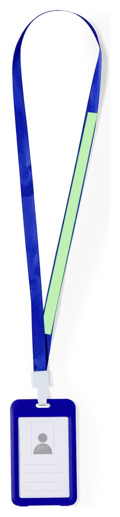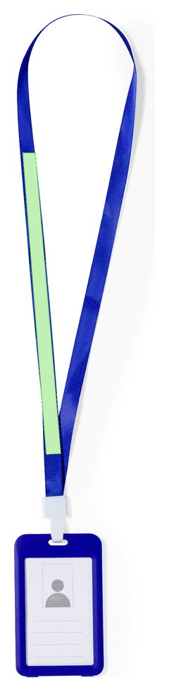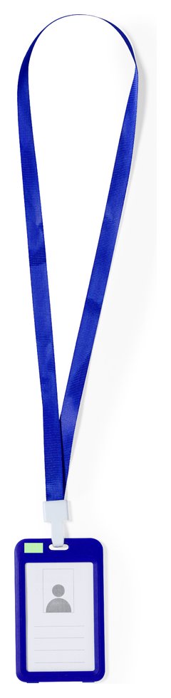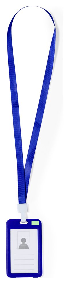 Identificador lanyard fabricado en suave poliéster. Portatarjetas con ventanilla de PVC y mosquetón en resistente plástico. Disponible en variada gama de colores.