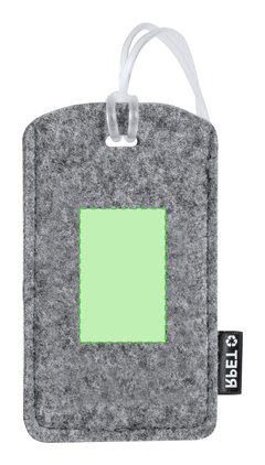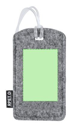 Identificador para maletas fabricado en fieltro RPET. Para amarrar a cualquier maleta gracias a su cinta flexible e indicar información básica, fabricado en fieltro RPET, con ventana y etiqueta distintiva de RPET. El fieltro RPET es fruto de la combinación del proceso de reciclaje de materiales plásticos junto con la técnica milenaria de fabricación del fieltro, dando como resultado un material de eco-tendencia que, además de ser de origen reciclado, también se convierte en reciclable.