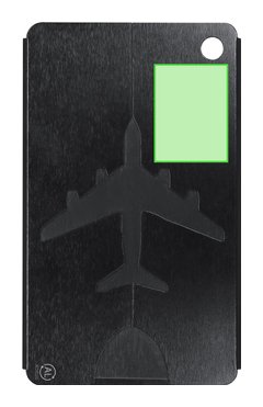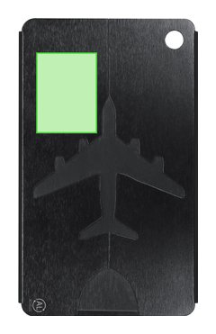 Original identificador de maletas con diseño de avión en resistente Aluminio Reciclado. Con cinta de acople en acero inoxidable con sistema de cierra en rosca y tarjeta de identificación en inglés con los siguientes campos impresos; Addres, Tel, Name, E-mail. Logo AL Recycled grabado por láser.