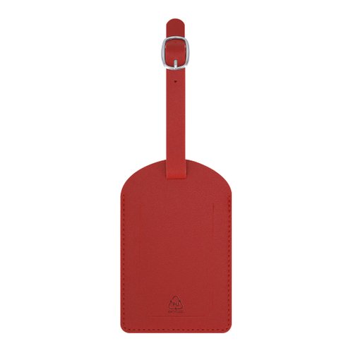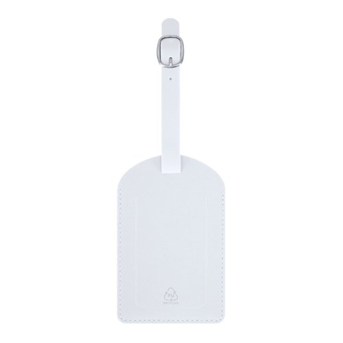 Identificador para maletas fabricado en PU Reciclado. Para enganchar a cualquier maleta gracias a su hebilla ajustable. Con ventana y etiqueta distintiva de PU Reciclado.