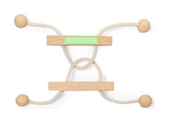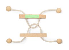 Juego de habilidad de 2 piezas fabricado en madera. Divertido rompecabezas de dos piezas unidas por un cordón de madera, cuyo objetivo es descubrir la forma de separar ambas piezas. Presentado individualmente en una caja de diseño kraft.