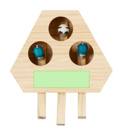 Juego para mascotas fabricado en madera. Divertido, seguro y fácil de usar: pulsando en las palancas aparecen 3 simpáticas figuras que despertarán la curiosidad de toda mascota. Presentado en caja individual kraft.