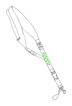 Lanyard en resistente y suave poliéster de variados colores con gorro impermeable en nylon integrado en cuello y cierre de cremallera. Desmontable con cierres de clip y accesorios mosquetón metálico y cinta.