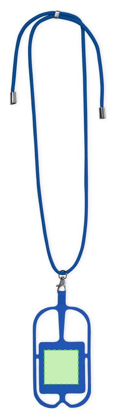 Original lanyard portamóvil en resistente poliéster y flexible silicona. Con accesorio de transporte para todo tipo de smartphones, capaz de ajustarse a todas las pantallas. Ajustador en cuello y extremos de cordones en acabado cromado. Incluye amplia zona de marcaje. Disponible en variada gama de colores.