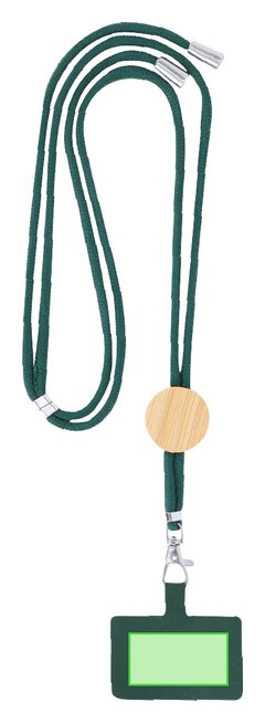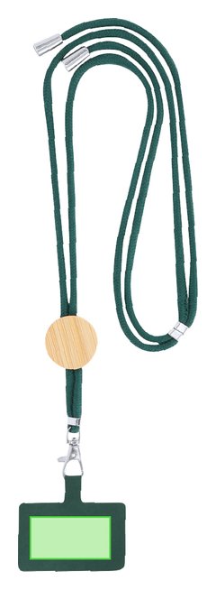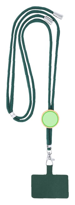 Lanyard con accesorio para smartphone. Fabricado en resistente algodón, con pieza de bambú. Accesorio de transporte para situar entre la funda y el smartphone y mosquetón giratorio metálico. Ajustadores en cuello, con detalles cromados en los extremos de los cordones de ajuste. Materiales como el bambú fomentan la utilización de materias primas naturales, reduciendo las emisiones contaminantes. Proviene de una planta de gran resistencia y versatilidad, con crecimiento y regeneración rápidos, siendo una excelente alternativa al uso de madera tradicional.