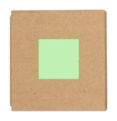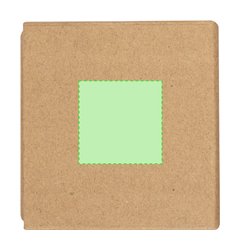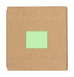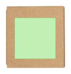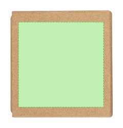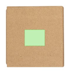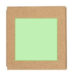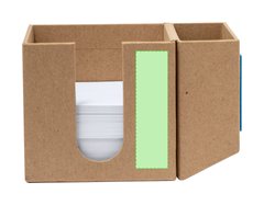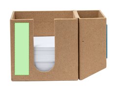 Portanotas fabricado en cartón reciclado. Práctico cubo desplegable con 320 hojas de 7,5x7,5 cm y 125 mininotas adhesivas de 1,5x5cm en variados colores, con práctico hueco para usar como lapicero. El cartón reciclado proviene del reaprovechamiento de excedente de fabricaciones y reciclaje de papel en el final de su vida útil, convirtiéndose en un lienzo ecológico y sostenible.