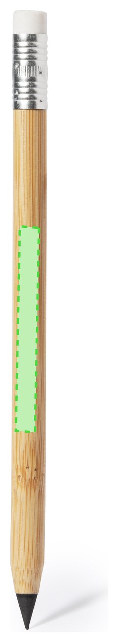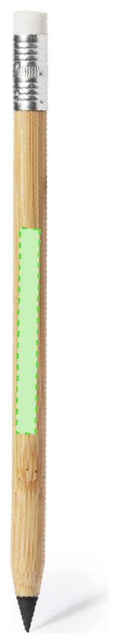 Lápiz eterno fabricado en bambú. Reutilizable y con escritura infinita, para así usar siempre el mismo lápiz y no generar residuos. Incluye goma de borrar en la parte superior del lápiz. Presentado en estuche individual troquelado de cartón reciclado que contiene lima afiladora. Materiales como el bambú fomentan la utilización de materias primas naturales reduciendo las emisiones contaminantes. Además, el bambú proviene de una planta de gran resistencia y versatilidad, con crecimiento y regeneración rápida, siendo una excelente alternativa al uso de madera tradicional.