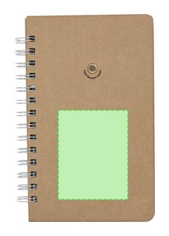 Libreta de semillas, con anillas y tapas rígidas, fabricada en resistente cartón reciclado. Incluye 80 hojas interiores, con disposición a una raya en papel reciclado. Además, en la portada contiene una cápsula con semillas de flores silvestres, en colores surtidos y con instrucciones de plantado en la cubierta trasera. El cartón reciclado proviene del reaprovechamiento de excedente de fabricaciones y reciclaje de papel en el final de su vida útil, convirtiéndose en un lienzo ecológico y sostenible.