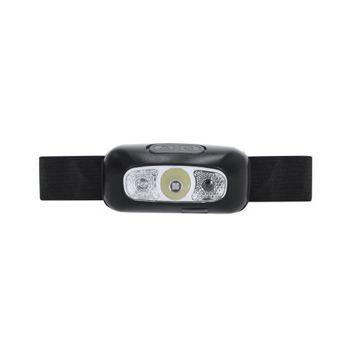 Linterna frontal con cinta elástica ajustable para cabeza, brazo… Con luz LED y 3 posiciones de iluminación (2 posiciones fijas y 1 posición intermitente). Con batería recargable de 400 mAh incorporada y cable de carga incluido de USB-A a USB-C en color negro.