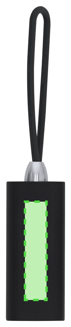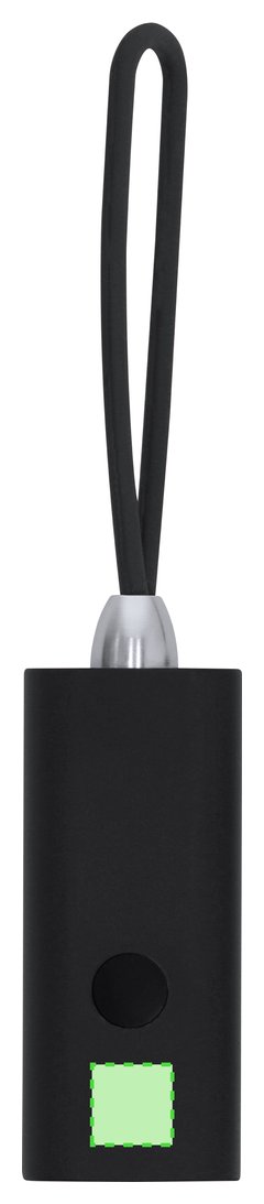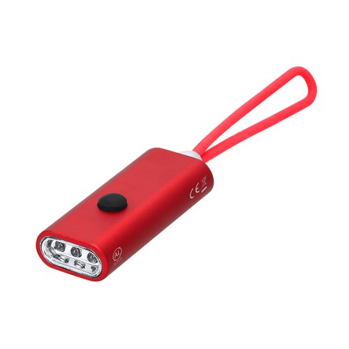 Linterna fabricada en Aluminio Reciclado. Con 3 LEDs alimentado con pilas de botón (incluidas) con botón on/off en la parte superior. Incluye asa de silicona para fácil transporte. Presenta distintivo logo de Aluminio Reciclado en el lateral.