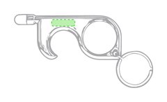 Llavero higiénico anti-contacto con bolígrafo y puntero integrados. Fabricado en resistente ABS de acabado metalizado y disponible en variada gama de colores. Especialmente diseñado para evitar tocar con las manos superficies de uso común (manivelas de puertas, interruptores, grifos de uso público, cajeros automáticos...). Con cómodo troquel para el dedo y presentado en bolsa individual de diseño. Recomendado para marcaje en tampografía.