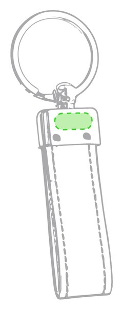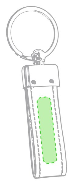 Llavero de elegante acabado en polipiel bicolor con accesorio metálico. Presentado en estuche individual troquelado.