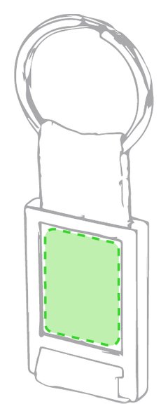 Llavero de divertido diseño con cinta de poliéster de variados y vivos colores. Con cuerpo metálico troquelado especialmente diseñado para marcaje en doming/gota de resina.