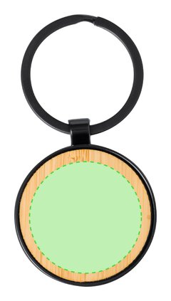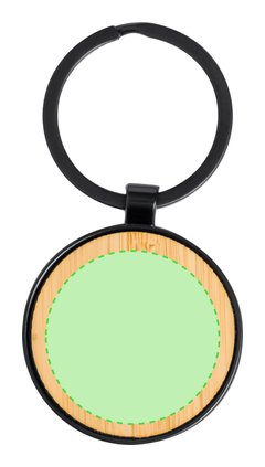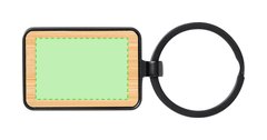 Llavero de elegante diseño, fabricado en metal pulido de color negro, con una cara en suave bambú. Especialmente diseñado par marcaje en láser y disponible en diseño rectangular y circular. Presentado individualmente bolsa de papel reciclado.