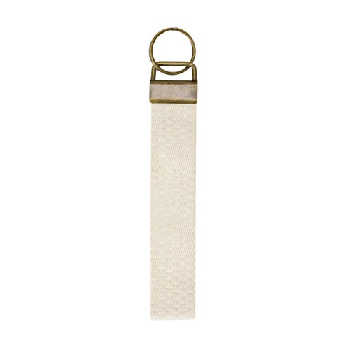 Clásico llavero con cinta de poliéster y accesorios metálicos en acabado de metal envejecido.