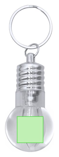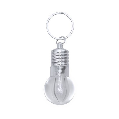 Llavero linterna con original diseño en forma de bombilla. Con 1 LED alimentado con pilas de botón (incluidas) con botón on/off en lateral y elementos decorativos y anilla cromados.